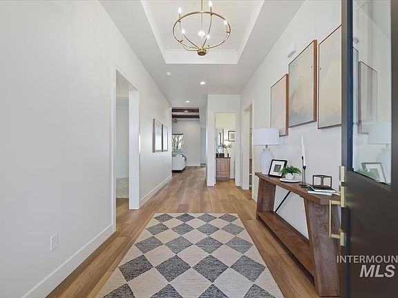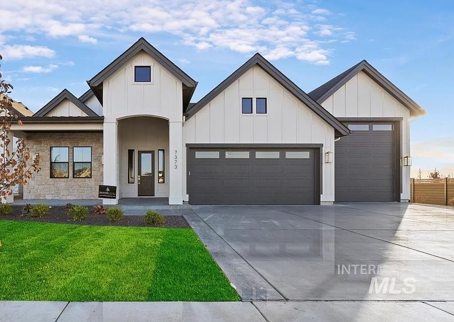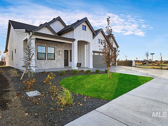 Luxurious Custom Home by Solitude Homes in Millstone Farms, one of Eagle’s Most Desirable New Communities! Situated on a generous quarter-acre corner lot, this stunning residence showcases Solitude’s signature craftsmanship where quality, comfort, & timeless design converge. This thoughtfully designed floor plan offers soaring ceilings, a wall of windows that flood the space w/natural light, & elegant millwork paired w/upscale finishes throughout. Chef’s kitchen is a dream, boasting a large island, custom cabinetry, premium appliances, & spacious walk-in pantry. Luxurious primary suite feels like a private retreat, complete with a spa-style en suite and an oversized walk-in closet. Highlights include designer lighting, beautiful millwork, & a roomy RV bay. Millstone offers over 23 acres of open space, walking paths, a community pool, & sports courts, including bocce ball, tennis, pickleball, basketball, & scenic ponds. A perfect blend of elegance, function & lifestyle. More lots available. PROFESSIONAL PHOTOS ON THE WAY.