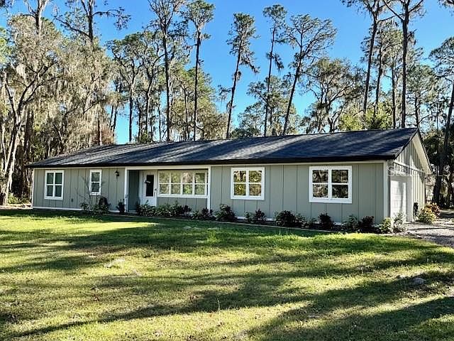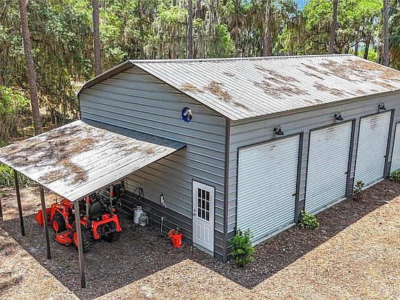 FULLY REMODELED 3/2 on Big Pine Island, a small community of single family homes surrounded by the Ocklawaha River which is the principal tributary of the St Johns River and part of the Harris Chain of Lakes. This private island is surrounded by natural landscapes of lush wildlife and growth of hydric hammocks, flat woods, scrub pine ridges and abundant wildlife. Community boat ramp less than 50 yards from your driveway makes it easy to launch your airboat, fishing boat, kayaks anytime. This island beauty sits on just under an acre of land and has plenty of room for toys, boats, camper, tractor etc. and parking up to eight vehicles with a 22' x 22' TWO CAR ATTACHED GARAGE AND A FOUR BAY DETACHED METAL 26' x 48' WORKSHOP/GARAGE with 110 & 220 power. Three roll up doors measuring 8' wide x 12' high and one 6' x 9' door along with a side entry door make this the perfect spot for all your cars, boats, motorcycles and other toys. From the moment you enter this home, you will love the bright open floor plan with luxury vinyl floors, new lighting fixtures, new paint, new bathrooms and a five star kitchen with SS Appliances, wood cabinetry, gas range and stylish granite countertops. Next to the kitchen is a custom designed floor to ceiling pantry that mimics the kitchen and offers tons of storage for just about anything!! Luxury vinyl is throughout the entire home for a cohesive and classic look, even into all three bedrooms. Both bathrooms have brand new vanities, lighting and new tile work that is top notch. Enjoy the 12' x 24' covered screened lanai off back of home and six person hot tub that's included. New roof in 2020. Short drive to hospitals, golfing, shopping & restaurants of all kinds in The Villages which is only a few miles away. If you're tired of the hustle and bustle then escape the city and make this special place your private oasis! Call today for your private showing.