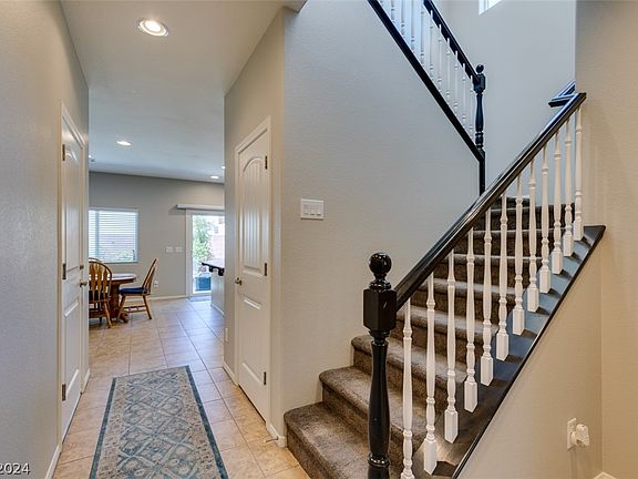 Located in a well-established neighborhood just outside of Mountains Edge, this charming two-story home combines timeless character with modern comforts. The residence features 3 bedrooms, 3 bathrooms, and a cozy loft area ideal for a home office or separate retreat. On the main floor, the layout includes a convenient bedroom and full bathroom, perfect for guests. The heart of the home is its warm living area, which leads to a functional kitchen with ample cabinetry. Upstairs, the spacious primary suite offers a serene retreat, complete with a generous en-suite bathroom and a walk-in closet. An additional bedroom and bathroom round out the upper level. The home also boasts a quaint maintenance free backyard, perfect for outdoor gatherings or quiet relaxation. With its blend of classic appeal and thoughtful design, this Las Vegas home is a delightful haven for comfortable living.