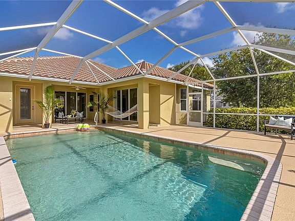 So many attributes of this waterfront home are extraordinary. Sizable and extra-wide parcel with a perfect position on Longview Ct. with an oversized paver drive, landscape and water views. The home is in impeccable condition and in a highly preferred North Naples location. The spacious, light, and open plan is perfect for entertaining. The open and airy 2,327 square feet are home to 3 bedrooms, each with their own walk-in closets, den, and 2 and 1/2 baths. Notable improvements include select newer stainless steel appliances, tile on the diagonal throughout, pocketing sliding glass doors, newer 2019 tile roof, drive, and pool pump. Heron Pointe is a gated community with low association fees minutes to Mercato, Vanderbilt Beach, Ritz-Carlton Resorts, and countless more. Ready to move in, this is the home many buyers seek but never find in such a competitive and limited marketplace.