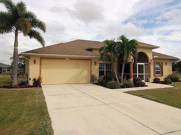PLEASE LOOK AT THE 3D VIRTUAL TOUR AND WALK THROUGH THIS LOVELY HOME ON LINE FIRST!! ENJOY! Burnt Store Meadows, a deed restricted community located in Punta Gorda is home to this lovely 3 bdrm, 2 bath, pool (26x13)home with over 2100 sq ft of living space and a 2 car garage (22x22). This great room plan is open with lots of light and has ceramic tile everywhere with carpet in the bedrooms. The double door entry opens into the great room and dining area and you can see through the generous pocket sliders to the covered lanai and pool area. The kitchen with Corian counters and lots of cabinetry is open to the great room and sizable breakfast area. Enjoy the view from the breakfast area out to the lanai and pool. The master bedroom suite is 22x14 and includes 2 closets, an ensuite bath with 2 vanities, garden tub and Roman shower. The 2 guest bedrooms are sizable and one has a walk in closet. They share the guest bath, which has a walk in shower. The third bedroom has sliders out to the pool. There is lots of storage in the garage (22x22) and even an extra fridge conveys. The laundry room also has storage cabinets. Beautifully landscaped and backing to large greenbelt area, this home includes, irrigation system, accordion hurricane shutters through out and a security system. So whether you are a snowbird or a year round resident, you will love this home in Burnt Store Meadows.