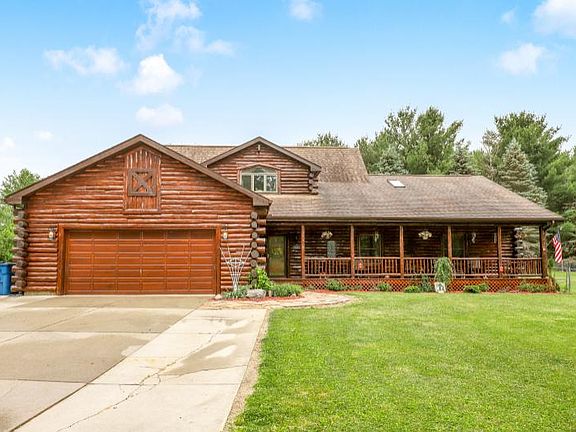 This extremely distinguished log home sits in a very private setting on just over three acres. An amazing covered front porch, huge back deck, rear solarium, over 24 ft. cathedral ceilings in a fire-lit great room and fourth bedroom/office loft are just a few things this home has to offer. This home also has three main floor bedrooms, first floor laundry, hardwood floors, full finished basement, two car garage and much more. MANY more updates have been done as well. All this in the Flushing school district. This home is a must see!!
