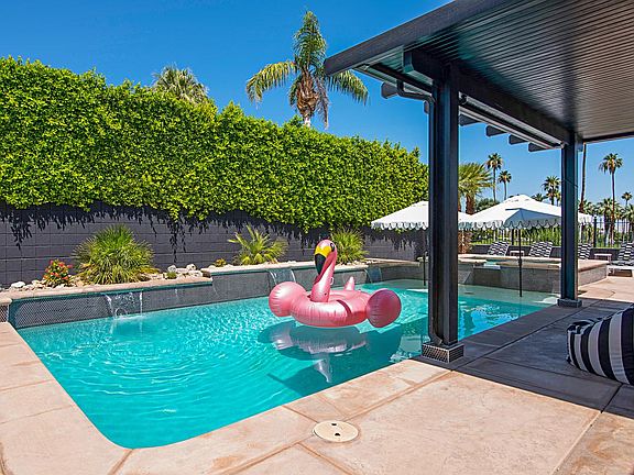 Available for the holidays- Halloween, Thanksgiving and Christmas. Location, location, location - welcome to The Nest Palm Desert. Amazing location on the 12th hole of the historic Shadow Mountain Golf Course, walking distance to El Paseo with world famous shopping and restaurants. Beautiful 4 bedroom, 3.5 bath with a casita (5th bedroom) pool view home with golf course, mountain and sunset views. Casita has a small kitchen and private entrance. Beautiful entertainer's backyard with pool and spa and putting green and private gate leading to the 12th hole of Shadow Mountain golf resort. Eclectic mid century modern home with all the amenities to make this your home away from home. This is a furnished month to month vacation rental. Will consider long term upon request. Rent varies based on the month. The home has a new 10KW Solar System that takes care of the majority of the electric bill. $400 towards utilities are included.