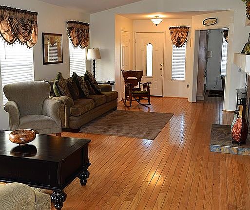 Mission Grove Charmer in gated community 1 story home Wood flooring throughout Tile flooring in bathrooms Plantation Shutters Wood Shutters Great Room Stacked stone fireplace Monitored Alarm System Dbl entry front office/study/den Mirrored closet doors Mstr walk in closet Laundry in garage Work bench and shelves in garage 2 car garage w/auto opener Patio and cover with large tree in yd Vinyl fencing Park behind property Tenant responsible for all utilities Refundable Pet(s) Deposit: $500-$750 Monthly Pet(s) Fee: $25-$50
