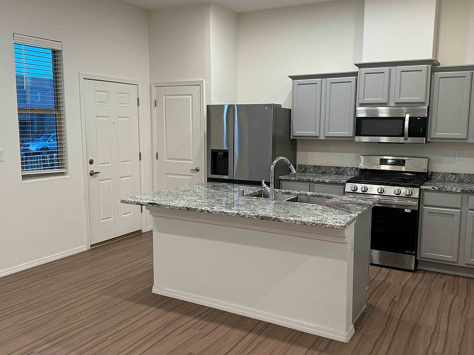 Available NOW - Very nice, clean, & new 4 bedroom with 2.5 baths and 2 car garage. Very high ceilings make the space feel huge. 5 mins to Hwy 599/I-25/Santa Fe Airport, 15 mins to downtown Santa Fe, 45 mins to Los Alamos. Downstairs is a large living room/dining room & open kitchen area with patio doors out to the fenced-in front yard. Kitchen has NEW stainless steel appliances and an abundance of cabinets and granite countertops. There is a hall guest half bath downstairs as well. Upstairs is a nice laundry room with NEW washer/dryer machines included plus 4 bedrooms, 2 full baths and open hallway between the bedrooms. The entire house has wood plank floors throughout and easy to clean. Central Heat & AC for added comfort. Home is very energy efficient. Pets are OK with pet deposit, but must be discussed to be approved. NO Smoking allowed. Renter pays for utilities. Pets need to be discussed and approved. 6 month lease to start.