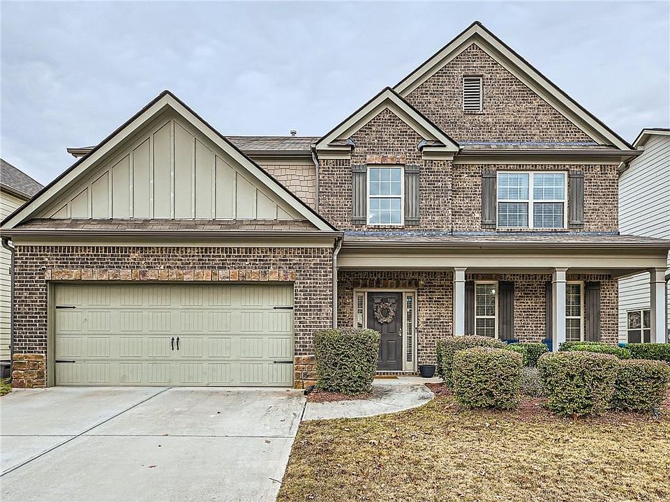 Honey stop the car!!! This is a Showstopper! Beautiful brick front and covered patio guide you inside to the GRAND 2 story foyer. Look right and you will notice the luxurious Coffered ceilings in the formal dining room, next the hardwood floors guide you to the GORGEOUS and OPEN CONCEPT kitchen with granite countertops, SS Appliances, kitchen island with bar, and all this overlooking the Large living room with Cozy FP! Guestroom and Full bath on the main, and upstairs there are 2 more good sized bedrooms. The Enormous Master and has trey ceilings, en-suite bath with double vanities separate tub/shower, the walk in closet weave all dreamed of and there is also a big bonus room upstairs as well! This home does have a great level yard out back and LED lights installed, and of course much more you will want to stop by to see !