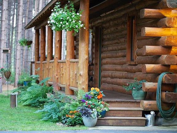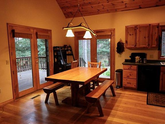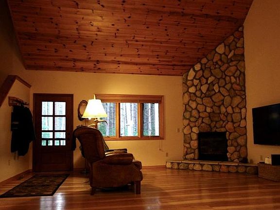 Quintessential Northwoods log-sided home amongst towering pines down a curved blacktop driveway. With a few interior updates/repairs this will be your dream home in Minocqua's prestigious Timber Ridge. Live in harmony with nature and wildlife, play golf, hike, bike and snowmobile nearby Bearskin trail. High-speed cable internet. Relax by the fieldstone fireplace in the Great Rm under soaring pine ceiling where hickory floors lend a warm glow. Enjoy nature's views from 2 sets of patio doors or the wrap around deck. Ample kitchen ready for when you aren't grilling out or going out. Black appliances and Kohler faucet add modern appeal. Main floor Mstr bdrm suite w/full bath, dual sinks, step-in closet and patio doors. Main floor laundry and pwdr rm near the att. EV-ready 2-car garage. Bright open staircase leads to the 2nd bdrm and full bath. These spaces are prepped for new flooring of your choice. Entertain in the lower level large fam rm and bdrm w/walk-in closet and 3rd full bath.