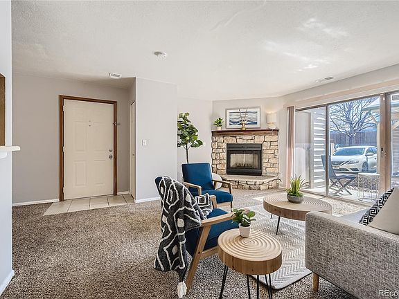 Welcome home to the great Mountain Gate I community. This two bedroom, two bath condo is conveniently located on the ground floor with a great layout for entertaining. The condo features a rustic rock hearth with wood burning fireplace in the living room and a private covered patio to enjoy the beautiful CO weather. The spacious master bedroom features an en-suite 3/4 bath with double sinks. Bedrooms and living room walls and trim have been freshly painted. Separate laundry area with washer, dryer and storage shelves included. Neighborhood amenities include parks, playgrounds and walking paths. Easy access to 470, shopping and dining. Call today to schedule your private showing. This home won't last long!