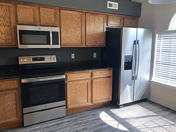This well-kept 1,400 sq. ft. ranch offers 3 bedrooms, 2 baths, and an open, comfortable layout. The kitchen features granite countertops and stainless-steel appliances, with vaulted ceilings and great natural light throughout. The primary suite includes a private bath and plenty of closet space. Washer and dryer included. Attached 2-car garage and a covered back patio for relaxing or entertaining. Located in a quiet, friendly neighborhood with a true sense of community and great neighbors. Convenient access to Pueblo Blvd, shopping, and restaurants.