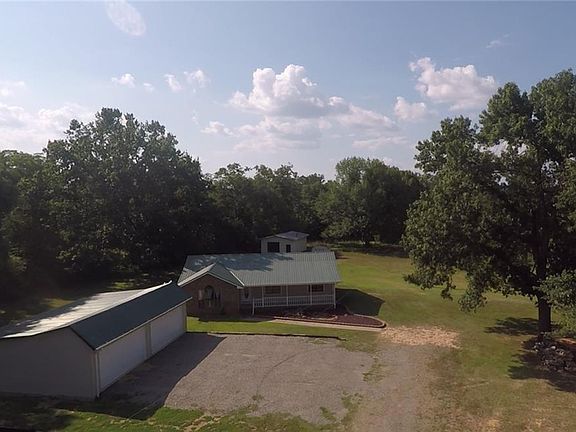 Serene, secluded contemporary home sitting on acreage delivers country living at its best. Property features pond, firepit, large shop, huge deck for entertaining, and storage. Take in the wildlife fish the pond work in the shop or entertain guests on your large deck. Brick home features 2X6 walls, split plan, vaulted LR ceiling, pantry, HVAC 16', water heater 16', and dishwasher 16'. Fridge and window treatments convey. Shop framed on 12" centers, two garage doors, workbench. 3 miles to Clear Creek Park