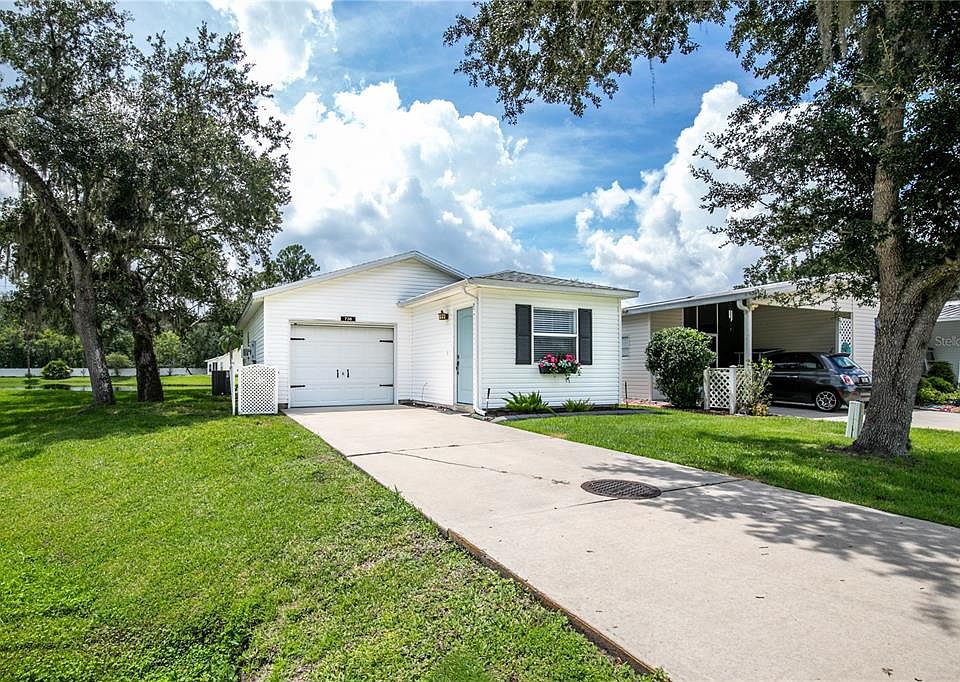 Welcome to Pennbrooke Fairways, a 55 plus community in the heart of Central Florida. This is a very active community with so many amenities and clubs to keep you busy. Three golf courses, pro shop, pickleball, restaurant, two swimming pools, two club houses, and a club or group for just about every interest. If that's not enough, The Villages is less than 2 miles down the road where you will find shopping, dining, entertainment, and medical services. A favorite benefit among Pennbrooke residents is the low HOA fee of $255 which includes your lawn care, expanded cable services, and internet. One of the best priced single-family homes now available here, this is a nice light and bright home that has been tastefully updated. This would make a GREAT SEASONAL HOME to escape the cold winters up north. It is partially furnished and what you see will stay with the house when sold. With a cottage vibe, this one bedroom one bath easy to maintain house overlooks a pond at the end of a street. You'll enjoy a little bit more elbow room here with no neighbor on one side. The bedroom has a walk in closet and a laundry room. The kitchen opens to the living space and has a bar top for informal meals. There is a one car garage with window air in place so you can turn this into an office, workshop, or hobby room. Roof was done in 2021 and HVAC replaced in 2016. This is a perfect home if you are looking for something that's easy to maintain so more time can be spent enjoying the good life here in Pennbrooke. We are just an hour to Disney or Orlando International Airport, and very close to toll roads and I-75 to take you with ease to other areas to explore. Come and see this one today!
