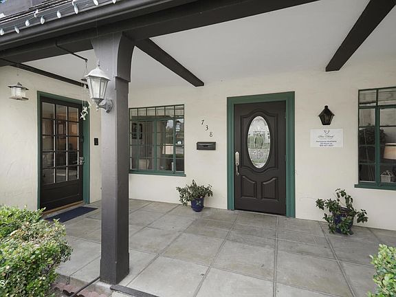 Two upstairs apartmentsOver one-third acreSteeply pitched shingled roofsProminent corner lotStucco facadeHeavy wooden doorsLarge multi-paned windows