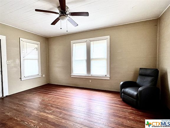 This nice home is located in the great town of Goliad. This could be a great investment property or for someone looking for a cute fixer upper. House features 1 bedroom, 1 bath, living room, and a laundry room .The rooms in the home are fairly large and spacious. Pretty hardwood floors and wood ceilings. Home comes with the refrigerator and two window units. This home also features a newer composition roof . Enjoy your morning coffee while sitting on your covered front porch. This home needs a little TLC , but has great potential. Schedule your showing today!!