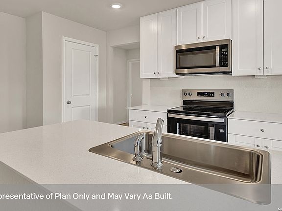 DECEMBER ESTIMATED COMPLETION DATE. The Atlanta is one of our one-story floorplans featured in our Spring Valley community in New Braunfels, Texas. This 1,156 square foot home includes 3 bedrooms, 2 bathrooms and a 2-car garage. Our homes in Spring Valley feature front masonry exteriors. Step inside the Atlanta and enter the heart of the home, the open concept living space. The kitchen, dining and living room are intentionally designed for everyday living and entertaining. The kitchen features an island with a stainless-steel sink, quartz countertops, 42' upper 'picture frame' cabinets, a pantry closet, and stainless-steel appliances. The secondary bedrooms are located off the kitchen, as well as a secondary bathroom and utility room. The bedrooms include carpet and closets with wood shelving. The secondary bathroom has a shower/tub combination and a cultured marble vanity with trench sink. The primary bedroom is tucked away at the back of the home and includes an attached bathroom. Stretch out at the end of the day in this owner's retreat, which includes a walk-in shower, cultured marble vanity with trench sink and a large walk-in closet. This home features our America's Smart Home base package, which includes the Video Front Doorbell, Front Door Deadbolt Lock, Home Hub, Thermostat, and Deako Smart Switches.