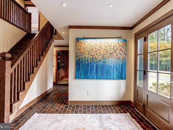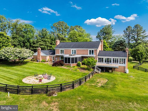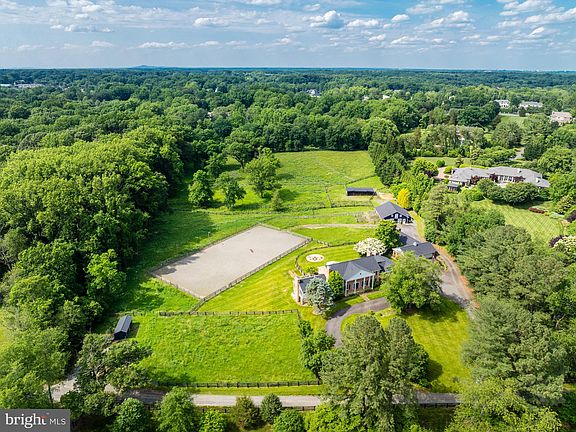 This property is a spectacular bucolic 8.43 acre equestrian property located just off Georgetown Pike near the Village of Great Falls. The privacy and tranquility of this property cannot be beat. Located at the end of a country lane winding past beautiful estates and mature trees framing the road. The stately traditional brick colonial with a circular drive and four car detached garage with an attic is handsomely sited at the entrance of the property. The property includes a full service guest house, 6 stall barn, two run in sheds, 4 paddocks, a lighted riding ring with gravel walkway from the barn and thoughtfully fenced and crossed fenced. The house feels like a country home with wide-planked wood flooring and trim throughout, four wood burning fireplaces in the main living areas and a gas fireplace in the primary suite. The owner's suite has a luxury bath and large custom walk-in closet with a second laundry nook containing a stacked washer and dryer. In addition to the primary suite, there are two en suites with updated baths. One of the highlights on the main level is a huge family room with a cathedral ceiling, walls of windows, custom wood paneling and a wood burning fireplace. The formal living room has custom wide plank tongue & groove heart of pine flooring and solid cherry beams with a stone-faced wood burning fireplace and French doors to a large screened porch. The formal dining room also has a wood burning fireplace and custom wood flooring and high end wallpaper. At the other end of the main level, there is an expansive great room with a hand-stacked stone fireplace, wet bar and custom cabinetry on three walls. The main level is complete with an updated kitchen and adjoining breakfast nook, cozy library, two half baths and a mudroom/laundry room with doors to the front and backyards. The walkout lower level is ready for the new owners to finish for their lifestyle. There are scenic views from every window on the main and upper levels. Outside the house there are brick walkways to the barn, a fire pit and a tree fort. The guest house features a two story family room with brick fireplace, eat-in kitchen, full bath and lofted bedroom. This space is perfect to rent or Airbnb, offer to guests for added privacy or provide a barn manager for on site accommodations. The center-isle barn includes 6 generous stalls with water, a wash stall, feed room, a hay loft, and environmentally controlled tack room with sink. The barn is well lit and has been in continuous use and is full operational.