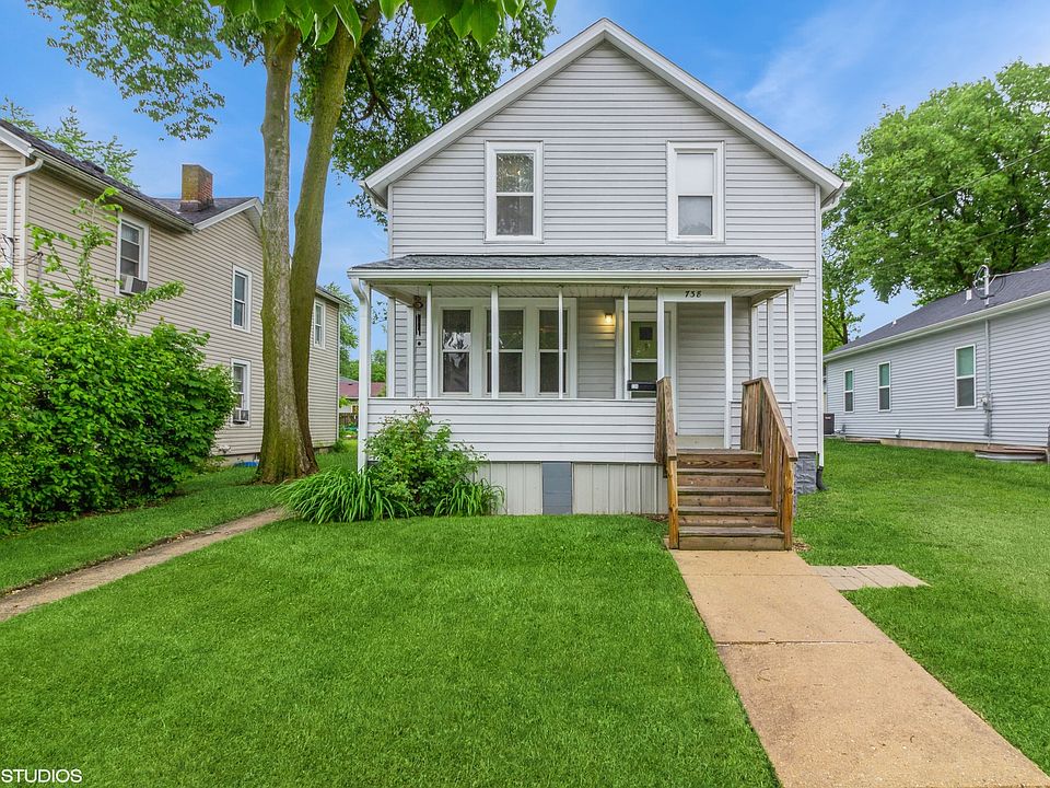 You'll love this clean, move-in ready 3-4 bedroom home~Beautiful original wood trim throughout & impressive 9' ceilings on the main floor~The spacious living room opens to the dining room~The upgraded windows promote great natural light~There's also a bedroom on the main floor~Many recent improvement have been made to this home including a high efficiency furnace '23, high efficiency 40-gallon hot water heater '24, 30-year architectural shingle roof, gutters, downspouts & exterior vinyl siding on back of house '23, newer carpeting/padding & vinyl flooring in the front foyer, kitchen & enclosed side porch '24, new light fixtures throughout '24 & new SS range hood vent & upgraded electrical outlets in several rooms '25~Nice dry basement provides good storage space & washer/dryer (gas & electric) hook-up~Enjoy the spacious enclosed side porch or catch a nice summer breeze on the open front porch~A large backyard for your outdoor enjoyment~Convenient location, close to shopping, schools & parks~Hurry this one won't last long!