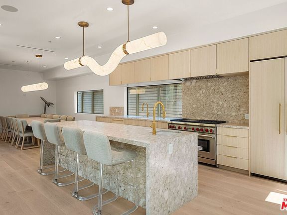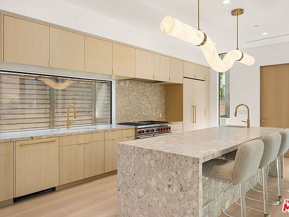 Tucked away in one of Venice's most desirable pockets, just moments from the iconic Abbot Kinney, this brand-new architectural residence is a private offering of rare design pedigree. Meticulously crafted by renowned local architects Electric Bowery, the home seamlessly blends bold materiality with coastal sophistication. Step inside to soaring ceilings, an open-concept floor plan, and curated spaces designed for elevated living. Every finish has been thoughtfully selected and masterfully executed from the live brass Honey Onyx powder room to the Corteccia Natural Quartzite in the first-floor bath, the Tiger Eye Onyx in the guest bath, and the showstopping Calcutta Sunset marble in the primary suite. The media room's Lilac Marble wall adds a refined, artistic touch. At the heart of the home, the kitchen is a true statement piece featuring Ceppo marble countertops, white oak custom cabinetry, and designer Rejuvenation hardware. The adjacent dry bar, clad in striking Rosso Levanto marble, sets the tone for sophisticated entertaining. Indoor-outdoor living is effortless here, thanks to a tranquil pool that blurs the line between the interior and lush exterior spaces. A spacious three-car garage completes the home, ensuring both functionality and convenience. This is not just a home, it's a design-forward sanctuary where luxury, privacy, and location converge. Available exclusively off-market. Private showings available to qualified buyers. FINISHES & FURNITURE LIST AVAILABLE UPON REQUEST. ALSO AVAILABLE FOR LEASE $47,000/Mo.