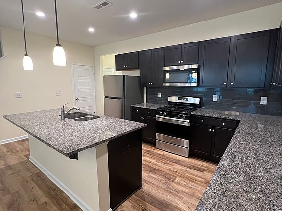 Beautiful three bedroom townhouse with open concept living space! Plank flooring, tile backsplash, and granite countertops in kitchen. Large bedrooms, double sink vanities in both full baths. Attached garage and covered front porch. A must see!
