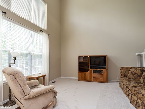 Fabulous Stuarts Crossing town home on premium lot with a basement! Very light and bright, with 2 story living room and beautiful wall of windows. Hardwood floors, brand new carpet throughout, white trim and neutral throughout. Loft is perfect for office or family room. Formal dining room is open to eat in kitchen with maple cabinets. First floor laundry room. Neat and clean basement with so many possibilities. Great patio with tranquil views. Conveniently located to shopping, restaurants, entertainment and major roadways. Don't let this be the one that got away!