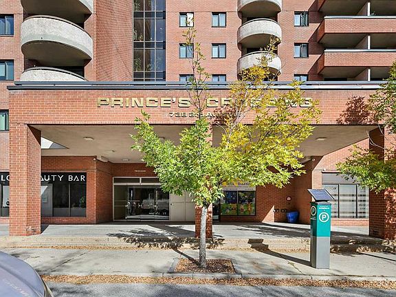 Discover an incredible opportunity to own a BEAUTIFULLY RENOVATED condo in the PRESTIGIOUS EAU CLAIRE district at an affordable price! Step inside to find a bright open-concept layout anchored in this 1 Bed/1 Bath condo in PRINCES CROSSING with sunny SOUTH EXPOSURE and lovely views from the 6TH FLOOR in this CONCRETE BUILDING. You'll fall in love with the designer KITCHEN showcasing ceiling- height CUSTOM CABINETRY featuring UPGRADED STAINLESS STEEL APPLIANCES including a sleek INDUCTION COOKTOP WITH CONVECTION OVEN, glass mosaic backsplash, QUARTZ COUNTERTOPS, and expanded eat-at island that seats four. Additional CUSTOM CABINETRY added to island for more storage. The spacious living area is bathed in natural light through large patio doors that open to your circular 180 degree balcony where you can take in the south URBAN SKYLINE AND WEST VIEWS. Renovated full bath with NEW VANITY, QUARTZ COUNTER-TOP, mirrored storage cabinet and DEEP SOAKER TUB. Updated baseboards, lighting and hardware throughout. Smart details like IN-SUITE LAUNDRY and a SPACIOUS STORAGE ROOM (big enough for a bike and more) make everyday living easy and organized. Pets allowed with Board approval. Princes Crossing offers a variety of lifestyle amenities including a well-equipped fitness centre with sauna, on-site convenience store, meeting room, concierge service and a heated underground parking stall. All of this just steps from Calgary's river pathways, fine dining and trendy cafes yet nestled on a quiet, tree-lined street in one of the city's most exclusive enclaves. Experience the best of downtown living - elegant, effortless and affordable!
