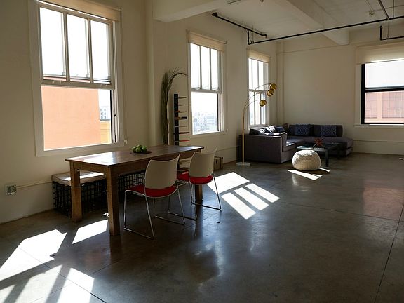 Perfect DTLA / Fashion District living. This amazing loft is located in the Historic Eckardt Building, which was built in 1917 and completely renovated 2007. The loft is a corner unit with sweeping views on LA on both sides, and plenty of light. It has polished concrete floors, oversized industrial windows, a large Italian-style kitchen with stainless steel appliances, granite countertops, and an open floor plan with 10 ft. high ceilings. A full bathroom with shower/tub and washer is also in the unit. This home is part of the Santee Village, which offers several amenities, such as rooftop pool, spa, basketball court, driving range & sundecks, full gym facilities, dog park, a conference room, as well as a beautiful courtyard with fountains where you find a community market and space for outdoor eating. The building has 24 hour security and courtesy patrol. This unit includes an off-site parking space, and is walking distance to stores, restaurants and access to public transportation.