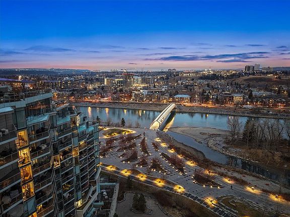 Experience luxury riverfront living at its finest in The Concord — Calgary’s most esteemed architectural icon. Perfectly positioned along the Bow River in the heart of Eau Claire, this exceptional 3-bedroom, 2.5-bath residence offers just over 1,780 sq.ft. of refined living space, blending timeless design with unmatched convenience and natural beauty. Inside, sophisticated craftsmanship and floor-to-ceiling windows frame breathtaking river and Eau Claire views, while two private balconies create seamless indoor-outdoor living. The gourmet kitchen features high-end appliances and elegant finishes that integrate harmoniously into the open-concept dining and living areas — ideal for relaxing or entertaining. The luxurious primary retreat feels like a true sanctuary, complete with a spa-inspired ensuite featuring a deep soaker tub, dual vanities, and exquisite custom details. Two additional bedrooms offer flexibility for guests, family, or a home office, while the stylish half bath ensures convenience for visitors. A rare privilege in downtown living, this home includes its own private double garage and direct access via a private in-suite elevator, elevating both privacy and exclusivity. The Concord redefines luxury living with amenities beyond expectation. Residents enjoy 24-hour concierge and security, a state-of-the-art fitness centre, and an elegant Social Lounge with catering kitchen, bar, and lounge — perfect for private events. Outdoors, the serene water garden features firepits and a covered outdoor kitchen, transforming into a one-of-a-kind private skating rink in the winter. The underground parkade caters to the automotive enthusiast with a heated entrance, wheel wash system, hand wash bay, and touchless car wash. All of this is set within Calgary’s most coveted inner-city location, surrounded by waterfront pathways, lush parks, and world-class dining. You are just steps from the Peace Bridge, Prince’s Island Park, the downtown business core, and an endless network of nature-filled trails and amenities.
