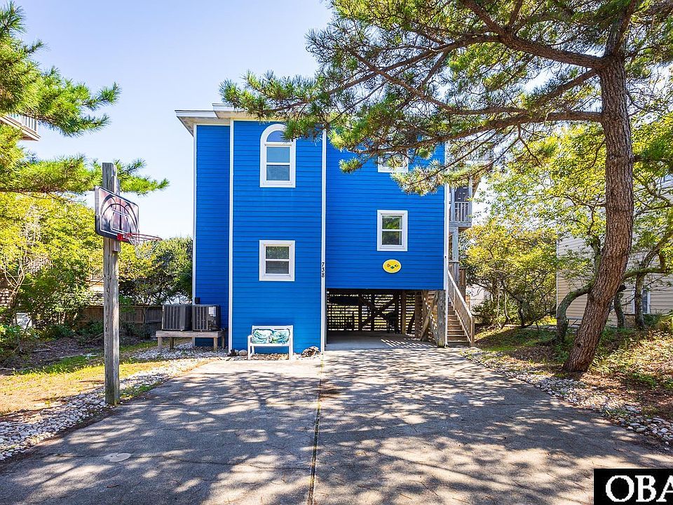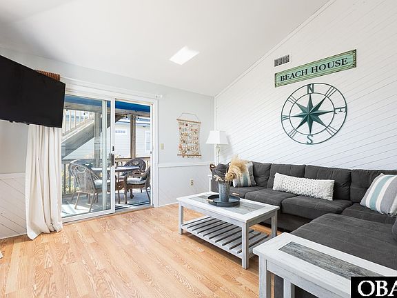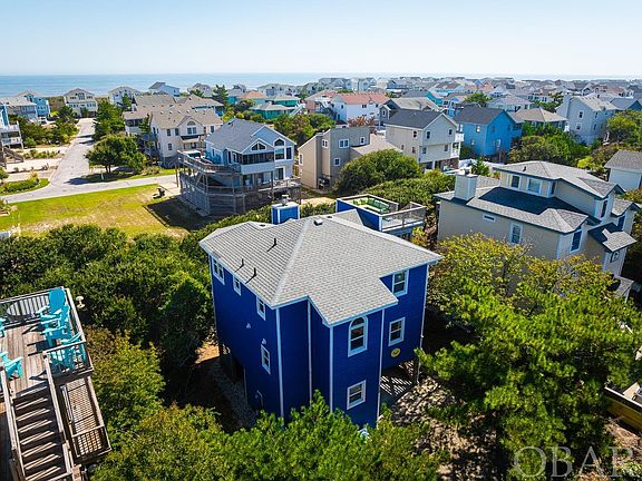 Lowest priced oceanside Corolla home on the market! Located on a quiet cul-de-sac and backing up to open space to the east, this Ocean Sands property makes for an amazing opportunity to own in oceanside Corolla. This well maintained, turn-key 4 bedroom home is the perfect example of coastal living with a rooftop deck to enjoy the ocean views and breezes, multiple decks, a screened in porch, a hot tub, spacious bedrooms, and an easy, short walk to the ocean. The top level of this home features a living room, dining area and kitchen in an open floor plan with plenty of natural light. Also on this floor is a bedroom and full hall bathroom. Just off the living space is a sun deck, screened in porch, and stairs to the rooftop deck. The mid level features one en suite bedroom with access to the private mid level deck featuring a hot tub, two additional bedrooms, and a hall full bath. The ground level features a dry entry and laundry room. Just outside the dry entry you will find a spacious outdoor shower. Decorated tastefully ready for instant enjoyment and sold completely furnished. Short walk to the private community beach access. Would make for a great rental home, second home, or year round living. New 2024 HVAC systems.