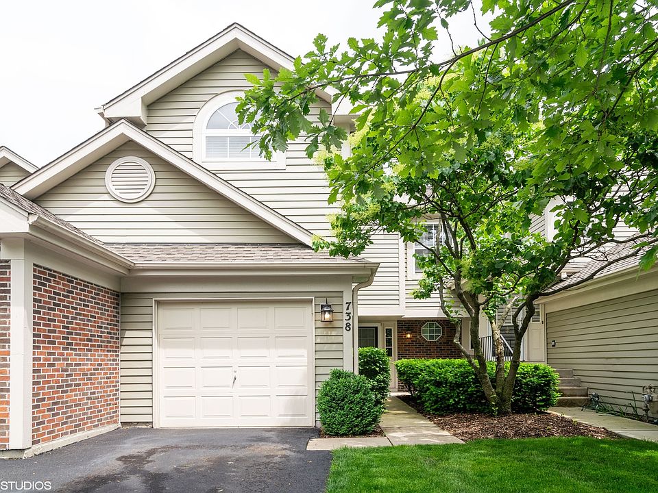 Kingsbury model townhouse in Cobblers Crossing. Located on a cul de sac. This beautiful 2 story townhouse has skylights that give tons of natural light. Vaulted ceiling make the home feel spacious. A loft area that over looks the dining and living room that can be used a an office or play area. Kitchen with SS appliances, granite counter top, and space for a table. Laundry room on first floor. Dining room with access to patio with its mature trees and tranquil setting. Nice size master with cathedral ceilings and 2 closets. Take a walk to the near by pond. Close to shopping, the interstate, the forest preserve. Investors are welcomed. Rentals permitted. Why rent when you can own.