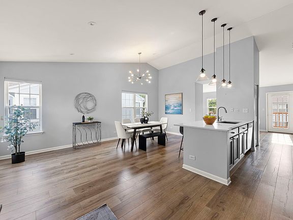 Welcome in to a stunning WEST facing second-floor ranch-style townhome, where natural light floods every corner of the thoughtfully designed space. The open-concept kitchen is a true centerpiece, featuring a massive breakfast bar with stylish pendant lighting, sleek stainless steel appliances, quartz countertops, 42" white cabinets and a neutral tile backsplash that complements any decor. With a unique layout and generous square footage, this home offers three distinct living areas-options include living and dining room space, home office as well. Step outside to enjoy your own private outdoor retreat, a balcony overlooking green space, ideal for relaxing or entertaining. Two spacious bedrooms are strategically placed on opposite ends of the home, offering maximum privacy. The TWO beautifully updated bathrooms boast modern touches including new flooring, tile, vanity, mirrors, and lighting. Throughout the home, you'll find consistent, timeless flooring that ties the entire space together. Notice the TWO-car garage, a standout feature in this community! The garage is also prepped with 240V for an EV. This home combines style, functionality, and comfort. Don't miss your chance to see it in person. Easy to show. It truly won't disappoint! HVAC and HWH 2019, Refrigerator 2024, New Siding 2021. Hop, skip and jump from I-88, the Metra, downtown Naperville, restaurants and shopping. INVESTOR FRIENDLY!