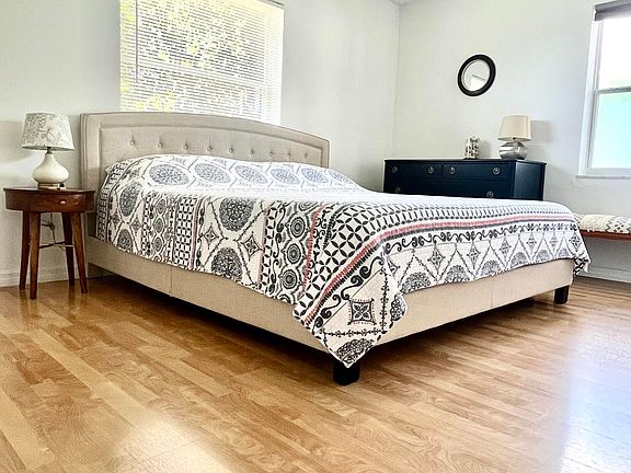 Clean! Clean! Clean! Charming 2 Bed 1 Bath with carport, newly fenced yard, newer roof (2018), newer AC with remote temp control, new lighting fixtures, and updated vinyl windows, glass front entry door, and beautiful French doors leading to your backyard oasis. This property boasts a large living room with wood flooring, beautiful open kitchen with breakfast bar and newer appliances, oversized indoor laundry room with upgraded water heater, spacious master bedroom with wood flooring, and additional flex space that can be used for an office/ den/ playroom/possible 3rd bedroom. Plenty of closet space and additional outside storage shed off the carport. This home has been meticulously maintained, recently painted, and landscaped. Located in the heart of Spring Hill, just a short drive to beautiful springs, the gulf, restaurants, and shopping. Within an hour of the Tampa Airport and award winning beaches.