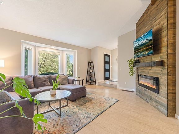 Cozy electric fireplaceModern comfortHuge backyardLarge deckUpdated kitchenPeaceful private backdropNew flooring