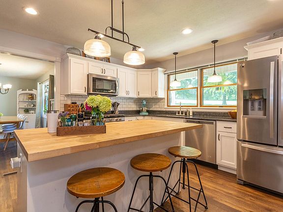 Imagine a property that is less than 10 minutes from Bloomingtons west side shopping that sits on 2.32 lovingly landscaped park like acres, with 4 bedrooms, 3 full baths, 2 car attached garage, and an 8 car detached garage perfect for projects, activities and storage. With multiple gathering places outside a breezy and relaxing covered patio, open deck, large backyard, well-tended garden for vegetables,herbs, and flower bed, fire pit. Equally welcoming open floor plan inside with a completely redesigned and remodeled kitchen with granite counter tops and a large butcher block island, family room with corner fireplace, living room, guest bedroom, full bath, laundry on the main level. Master bedroom with en suite bath, 2 large bedrooms, and another full bath are located on the upper level. Walk out basement has two large family rooms. Kitchen appliances, pool table and bar in basement, hot tub, some patio furniture, play set and riding mower will remain. Large closets, abundant storage. Roof replaced in 2019. This could be your dream home. Check out the virtual tour, drone photography and video walk through then call to schedule your personal private tour.