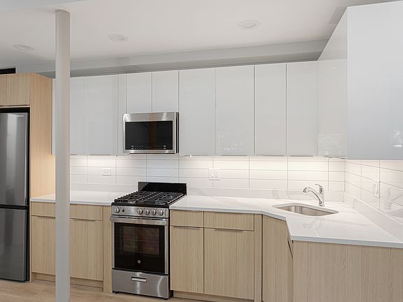 In unit laundryQuartz countertopsTwo toned kitchen cabinetsStainless steel appliancesDesigner plank flooring