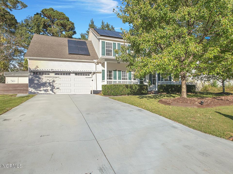 Beautifully updated home in Stony Creek with fantastic curb appeal, modern upgrades and a PAID OFF Solar System!!! A new roof was installed in 2019, and a new HVAC in 2020. This gem features a charming rocking chair front porch, a private wooded backyard, a screened-in covered lanai, —perfect for outdoor enjoyment. The kitchen boasts new white shaker cabinets, stainless steel appliances, wainscoting, built-ins, and a drop zone.