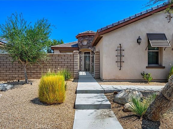 Located in the desirable community of The Gallery in Palm Desert, this 4 bedroom, 3.5 bath home offers 2,596 sq. ft. of stylish living space. A gated courtyard entry leads to an elegant rotunda, high windows, and 12 ft. tray ceilings that fill the home with light. The formal dining room is perfect for entertaining, while the kitchen boasts black granite counters, double ovens, and a Sub-Zero built-in refrigerator. The fourth bedroom is currently used as an office with a walk-in closet for added storage. The home is powered by 40 solar panels and a Tesla back up battery that are paid off. Enjoy resort-style outdoor living with a covered patio featuring recessed lighting and a mist system, plus a Pebble Tec pool with tanning shelf. The private backyard offers low-maintenance landscaping and stunning mountain views. Two attached garages accommodate three cars. This home blends elegance, comfort, and function in one of Palm Desert’s most sought-after neighborhoods.