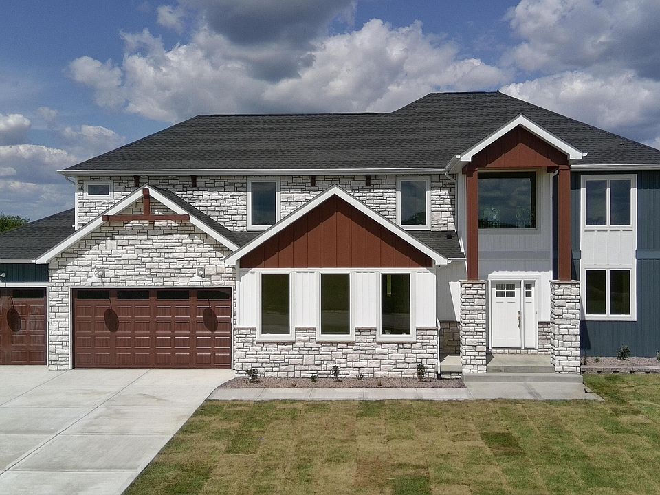 Brand new construction 1.5 story in Estates of Wynbrook, located on a spacious corner lot in the subdivision entrance. 5 bed 3.5 bath 3 car garage 3,280 sq ft. Main floor master bedroom with walk-in closet that has washer and dryer hookups and wet room (shower + tub). 2 story living room that leads into open concept kitchen. Office-bedroom / flex room on first floor. Grand loft overlooks 2 story living room with plenty of natural lighting. Second floor dedicated laundry room. 3 bedrooms on second floor. 2 bedrooms share jack/jill bathroom. Premium Andersen windows throughout home, 9 ft unfinished basement with 2 oversized egress windows with a roughed in bathroom in basement. Block landscaping and full yard irrigation system. Crown Point schools, seconds from Winfield's stores and amenities, along with a high end beauty salon in your backyard. 1 hour commute from Chicago