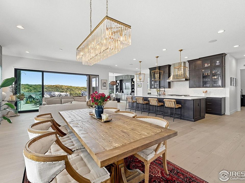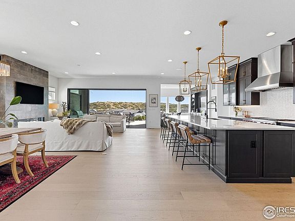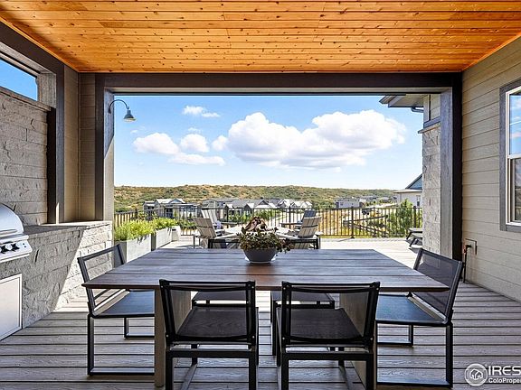 Exquisite Modern Retreat in The Canyons - this Shea Homes masterpiece blends luxury, privacy, and natural beauty. Backing to protected open space with sweeping views of Castle Pines ridge and Hess Reservoir, the home combines modern design with thoughtful functionality. Expansive ridge views greet you through retractable nano doors that extend the living space to a deck with fire pit and built-in grill, perfect for morning coffee or sunset gatherings. The open-concept main level features engineered hardwood floors, a gourmet kitchen with Sub-Zero and Wolf appliances, a sprawling island, and a cozy study room with custom built-ins. Automated Hunter Douglas blinds in the primary suite and study allow customizable light control, even programmable for gentle sunrise wake-ups.The spa-inspired primary suite offers a rain shower with glass enclosure and bench, plus a California Closets walk-in connected to the laundry room. The walkout lower level opens to a landscaped yard framed by mature pines, aspens, and natural boulders. This level includes two guest bedrooms, wet bar with mini fridge and dishwasher, and two unfinished storage rooms, one suited for a gym or future suite. A tankless water heater and whole-house humidifier add efficiency and comfort.Iron railings, Sonos sound in kitchen, deck, and suite, plus covered patios at front and back complete the thoughtful design. The Canyons community elevates the lifestyle with coffee, cocktails, and dining at The Canyons House, pool, and pickleball courts just a short walk away. Peaceful, private, and impeccably designed, this residence is more than a home-it's a lifestyle.