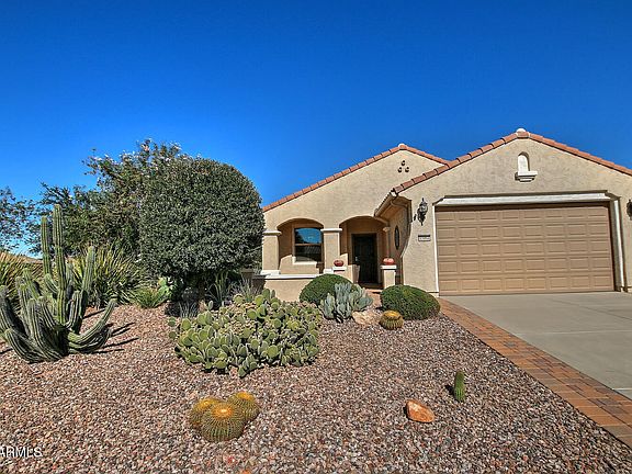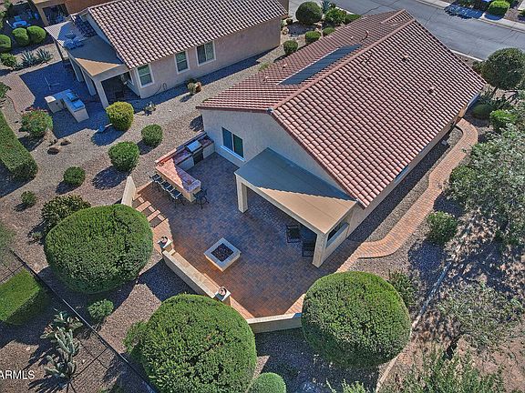 WELCOME HOME! This 2-bed 2-bath w/den ''Inspiration'' model sits on a premium corner lot next to a park in the Expedition neighborhood. The front patio of your new home offers great morning shade to enjoy that first sip of coffee while the spacious northeast facing back patio offers a wonderful entertaining space with a built-in BBQ, bar and firepit for those chilly winter nights. The interior lives large with a flowing open floor plan and open kitchen that boasts granite countertops, stainless steel appliances, R/O and an island w/breakfast bar. The main retreat offers an ensuite with dual sinks, walk-in shower and large walk-in closet. Other features of the home include OWNED SOLAR, newer w/d, refrigerator, PVC irrigation installed Oct. 2025 and is sold TURNKEY at this amazing price!