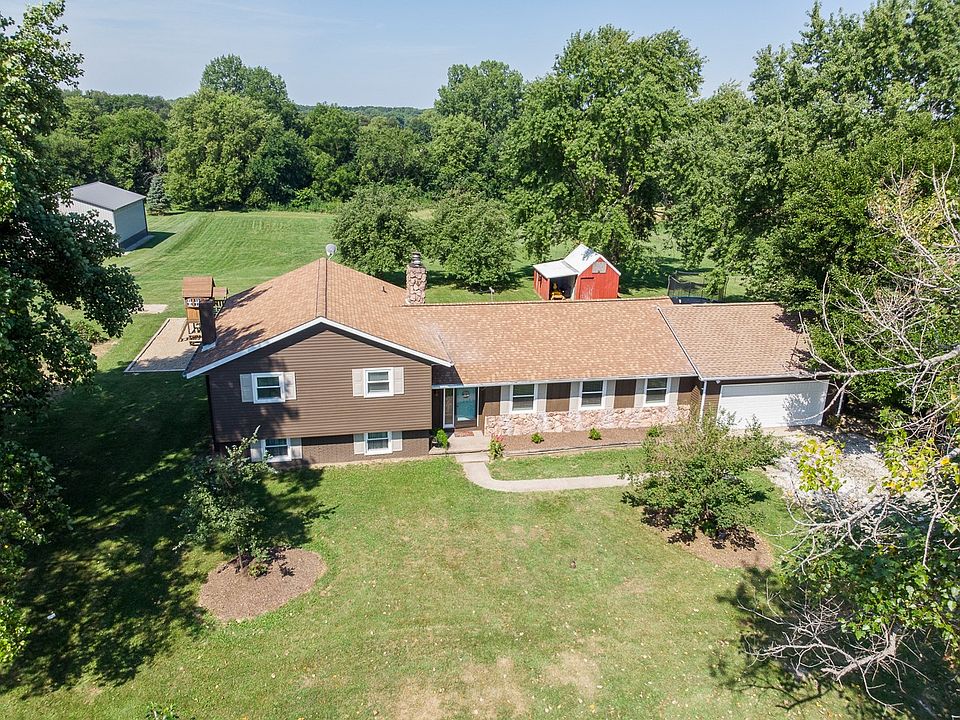 Beautiful Country Setting! This 4 Bedroom, 3 1/2 bath tri-level located on 2 acres has been fully updated this year! Very Spacious W/FormalDining Rm and main floor family room wood burning fireplace and sliders to covered patio. Large master bedroom w/full bath & walk-in closet. Whole house recently painted and new shutters. All Windows replaced (2022). New toilet in half bath and new master ceiling fan. New carpet throughout. New a/c unit and new garage roof. Recently installed ceiling fans in upstairs bedroom and living room. All appliances stay.