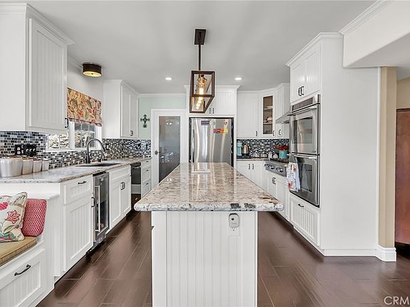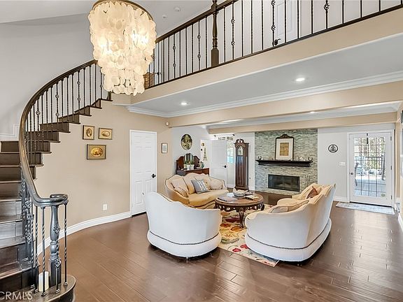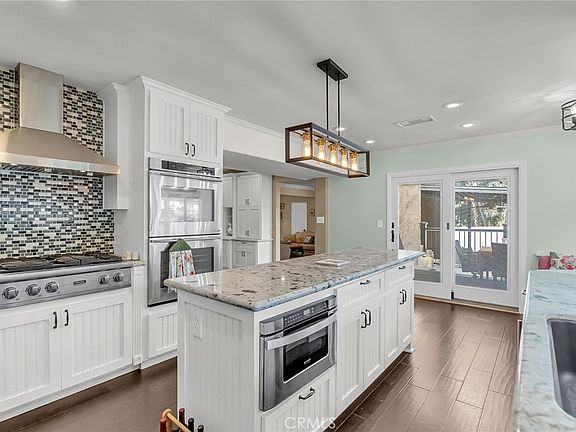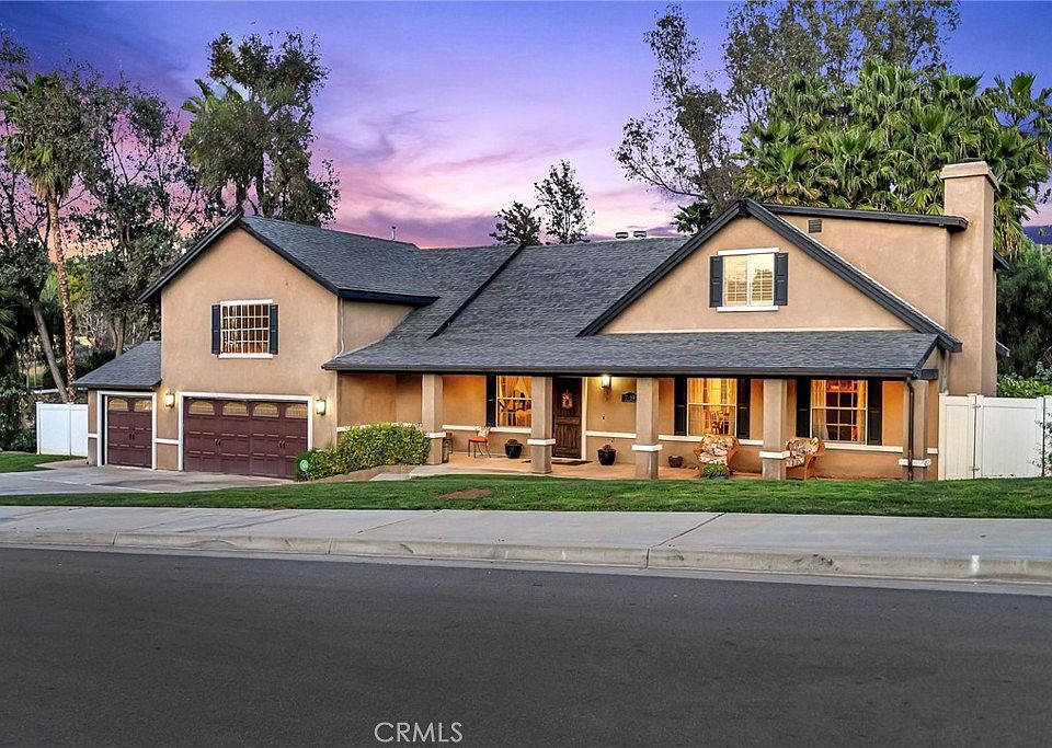 Sited on a sprawling .76-acre lot, this beautifully designed ranch-style home offers a perfect blend of comfort, sophistication, and functionality. A charming covered front porch welcomes you inside, where soaring vaulted ceilings, rich wood flooring, and a striking stacked-stone fireplace create a warm and inviting living space. Seamlessly connected to the living room, the open-concept family room, dining area, and remodeled kitchen form the heart of the home. The kitchen has been thoughtfully updated with white shaker-style cabinetry, granite countertops, and premium stainless-steel appliances. A cozy breakfast nook offers views of the backyard, making it an ideal spot for casual dining. A spacious downstairs bedroom with an ensuite bath is smartly positioned off the family room - perfect for guests or multi-generational living. A graceful spiral staircase leads to the second level, where a mezzanine-style hallway connects four well-appointed bedrooms. Positioned with privacy in mind, the primary suite is a true retreat, featuring a generously sized bedroom, a spa-inspired bathroom with a glass-enclosed walk-in shower and clawfoot tub, and a custom-built closet room for exceptional storage. Stepping outside, you'll find expansive decking that transitions into a covered patio, creating the perfect setting for outdoor entertaining. The focal point of the backyard is a Bogner pool and spa, offering a refined contrast to the natural watershed that meanders through the property. Located in one of Riverside’s most desirable neighborhoods, this home offers peaceful living and modern convenience.