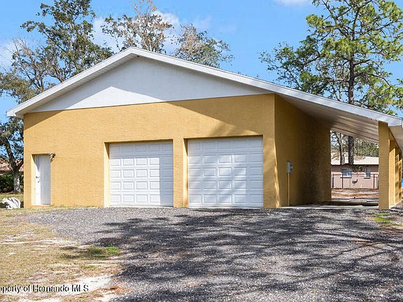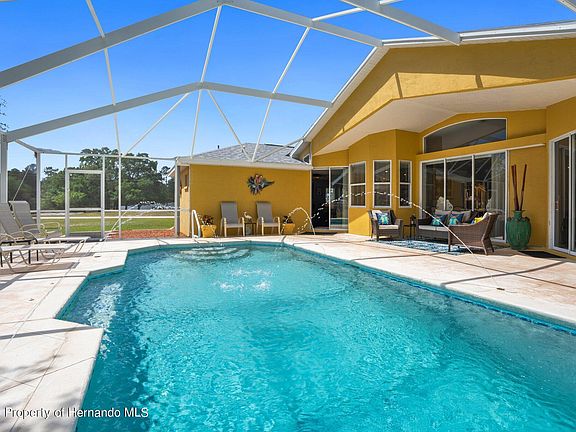 OPEN HOUSE Sat. 6/8/24 12-3pm. THIS ONE HAS IT ALL!! BRAND NEW ROOF with warranty in April 2024!! Gorgeous home + private pool + large detached block garage with FULL bathroom and office (or could be mother-in-law suite) + covered RV/camper/boat parking + it is nestled on over 1.1 acres with NO HOA and NO FLOOD + located in one of the most highly desired areas in the county just north of HWY 50, east of US 19 near Nightwalker! 1,931 sq feet of living space; 2,638 total square footage. The large home offers 3 full bedrooms + 2 bathrooms + formal living room + formal dining room + large family room + breakfast nook + the garage is air conditioned and used as extra living space for the family to play (this is not included in the 1,931 number)! The home has high ceiling, an open floor plan, and large glass sliders and windows overlooking the pool which makes the home feel light, bright, cheery, and spacious! The kitchen is open to the family room and offers granite countertops, white kitchen cabinets, breakfast bar for extra seating, stainless steel appliances, and a stainless steel under mount sink! The family room and kitchen has gorgeous engineered hardwood floors! The home has a split floor plan for privacy for the master! The master suite has an ensuite bathroom with granite countertops and dual designer bowl sinks, a jetted soaking tub, large walk-in shower with glass wall, two walk-in closets, and glass sliders to the pool offering pool views which feel very private! No rear neighbors to look at! The second bathroom has a tub/shower combo! The private pool and outside covered lanai is a GREAT place to entertain your family and friends! Enjoy your days and evening grilling by the pool and relaxing with the family and friends. The screen enclosure was just cleaned, all new door hardware added and re-screened. The large detached garage is the centerpiece of this property! It is 36 x 30 with an additional 30x 12 covered parking area for your toys! It is and made of block/cement construction! It has a full bathroom and large office (with wall unit AC)! You could easily convert this into anything you need...it's an impressive man cave as it is right now!! This is a substantial building!! You have no neighbors around you. The seller owns multiple adjoining lots if you as the buyer are interested in those as well! This is a GREAT property for any business owner with large vehicles to store or work on in the shop!! The home and property are located minutes from to Oak Hill Hospital, kayaking the crystal clear Weeki Wachee River, Buccaneer Bay Water Park! 10 minutes to fishing, boating, swimming, and the sunsets at Pine Island! Currently zoned for the newest schools...Winding Waters K-8 and Weeki Wachee High School! 12 minutes to the Suncoast Parkway for quick and easy access to Tampa Bay for work and play! 40 minutes to Tampa International Airport! 1 Hour 15 minutes to TOP US BEACHES! Call today to come see this rare find...so much to offer so close to everything!