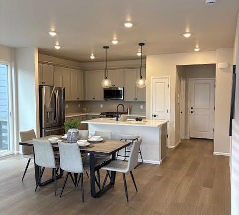 Move In Ready NOW! Walk to the Park!  This  3-bedroom, 2 1/2-bathroom, and Pocket Office residence lives larger than you expect with functional spaces for everyone!  It's also the Parade of Homes Winner for Best Design/Best Value!  The 1,642 finished square feet has plenty of room for everyone including a generous kitchen with quartz counter tops, spacious island and an open flow to your Dining and Great Room with an abundance of natural light!   Your unfinished basement will provide a canvas for future creativity and even includes rough in plumbing.   The entire first floor includes LVP and your home will have chrome finishes throughout. And only 2 blocks away from the neighborhood park including Multi Purpose Field, playground, picnic tables and bocce ball courts!