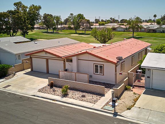 Discover the ultimate in 55+ living with this stunning and updated golf course home located in the popular Tri Palm Estates & Country Club. Nestled alongside the picturesque 5th fairway of the 18-hole course, this home boasts exquisite luxury vinyl plank flooring throughout and an abundance of natural light, enhanced by windows on all sides, custom plantation shutters, and skylights. IT EVEN INCLUDES THE PERMANENT FOUNDATION & FORM 433A FOR EASY FINANCING! Enjoy the convenience of a spacious walk-in pantry and an expansive covered patio that showcases breathtaking panoramic views of the mountains and golf course. The oversized attached garage is a true asset, providing ample parking for two cars, a golf cart, and offering additional storage and a workbench for your hobby needs. With fresh exterior paint, this home is ready for you to move in and make it your own. Venture beneath the home to discover a fully finished basement that presents endless possibilities--perfect for a craft space or additional storage to fit your lifestyle. Tri Palm Estates stands out as an active 55+ community where you own the land, and where ownership includes incredible perks such as free unlimited golf on both the 18-hole and 9-hole par-3 courses, access to a putting green, refreshing swimming pools and spas, tennis, pickleball, basketball, shuffleboard, and the community clubhouse, which features a banquet room, bar, restaurant, billiard room, and free Wi-Fi. Located just moments away from Costco, Home Depot, the Agua Caliente Rancho Mirage Casino, the Eisenhower Medical Campus, and Acrisure Arena--home to exciting professional hockey games and world-class concerts--this community is perfectly located for your convenience. With easy access to I-10, you're only minutes away from a wealth of shopping, dining, and entertainment in Rancho Mirage, Palm Desert, and downtown Palm Springs. Embrace an unparalleled lifestyle in a vibrant community that has it all!