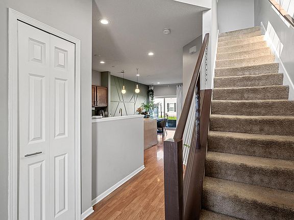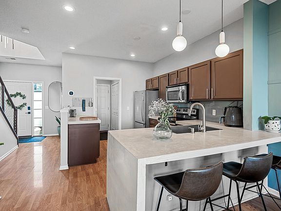 Welcome home! This beautiful Shakopee townhome welcomes you with vaulted ceilings in the foyer opening up to the second floor balcony. The upstairs has a large master suite with a spacious walk-in closet and private bathroom. The upper level is also conveniently fitted with a laundry room, large second bedroom, and a full bathroom. An open-concept kitchen includes stainless steel appliances and hardwood floors, and opens up to the living room where natural light shines. Large windows and sliding doors. A convenient walkout patio for when summer arrives creates the perfect space for entertaining both inside and out! An attached garage provides convenience come winter and includes plenty of storage.