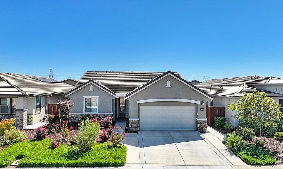 Welcome to your dream home in the exclusive 55+ community of Heritage at Vineyard Creek! This immaculate, designer residence is a true gem, offering fantastic upgrades and a like-new feel on a premium lot with unparalleled views. Nestled behind the gates, the home is perfectly positioned for optimal sun exposure, allowing you to enjoy morning coffee in your serene backyard, complete with a soothing waterfall. As the sun sets, relax in the cooler front yard, or warm up by the firepit on crisp fall evenings. Inside, the open-concept living space is adorned with luxurious finishes, including granite countertops, glass subway tiles, stylish wallpaper, designer paint, electric window coverings, and stunning fixtures. With two large pantries, storage is never an issue. Every detail has been thoughtfully designed to create a lifestyle of comfort and elegance. This home isn't just a place to live, it's a gateway to a vibrant community. Take advantage of the exclusive clubhouse, play pickleball, tend to the community garden, lounge by the pool, or enjoy a game of bocce with friends. Located near shopping, and dining, and with easy freeway access, this is the perfect place to relax and thrive. Don't miss out on this exceptional opportunity, ask for the full list of upgrades!