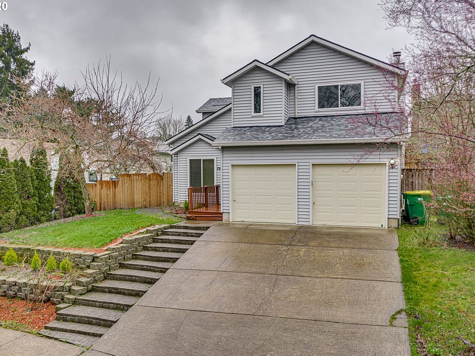 Light and bright home with curb appeal, gracious entry, and privacy. Expansive living room, cozy family room with fireplace, and kitchen breezeway with breakfast bar & updated SS appliances. High ceilings, skylights, fenced yard, covered back deck, and double car garage with additional paved parking. Large master suite with walk-in closet, two and a half baths, spacious bedrooms with ample light. Nearby parks, schools, and shopping. Plenty of room to roam, dream, and play!