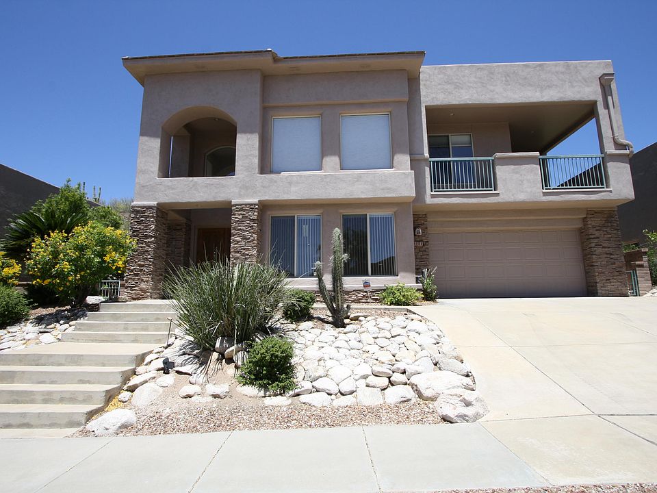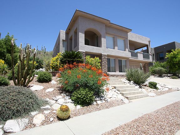 Beautiful 4bdr/3ba home in Catalina Foothills! As you enter the front door you are welcomed into Living Room w/Grand staircase, vaulted ceilings, tons of natural light and tiled floors! Open & spacious kitchen overlooks Family Room w/ Fireplace. Huge Master Bedroom overlooks the back yard w/views of gorgeous Saguaros! Master bath offers dual vanities, garden tub, shower, walk-in closet and more! Two bedrooms upstairs w/ Jack & Jill bath, Front bedroom has private patio w/mountain views! Downstairs has bedroom and hall bath. This is a MUST SEE home in a gated community with sparkling community pool!