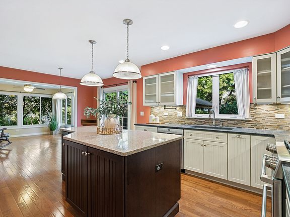 Versatile bonus roomFinished basementMature treesRemodeled spacious kitchenLarge bay windowGleaming hardwood floorsPergola spaces