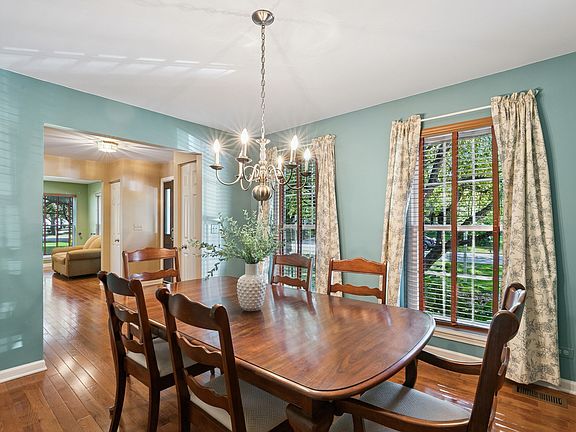 This classic beauty offers timeless charm with a traditional yet semi-custom floorplan in a highly desirable neighborhood. Meticulously cared for and thoughtfully updated, the home welcomes you with gleaming hardwood floors and a remodeled, spacious kitchen that flows seamlessly into the sunroom-perfect for casual gatherings. The family room, anchored by a fireplace, built-shelving and large bay window, creates a warm and inviting setting, while the spacious formal dining room and living room with floor-to-ceiling bookshelves add elegance and character. Upstairs, the primary suite is a true retreat with a generous sitting area, an incredible walk-in closet, and a luxurious bath, complemented by a versatile bonus room ideal for a playroom or home office, plus the convenience of second-floor laundry. 3 other generous bedrooms. Remodeled bathrooms and a finished basement provide style and function throughout. The garage is equipped with wall system organizers, while the backyard oasis-complete with mature trees, a patio, and pergola spaces-offers a private escape. Perfectly located near schools, train, walking paths, the lake, and town, this home blends classic design with modern living in the most inviting way.