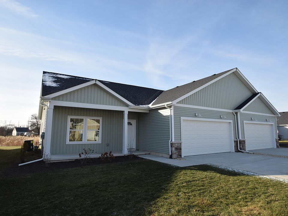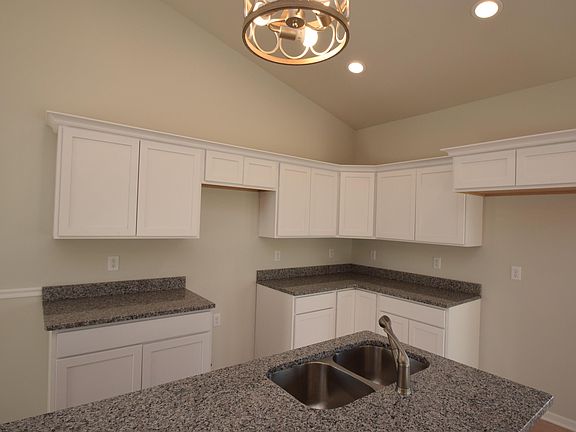 Welcome to your dream home! This exquisite new ranch model offers the perfect blend of modern convenience and serene living. Nestled on an oversized lot overlooking a picturesque pond, this home invites you to enjoy maintenance-free living and endless outdoor possibilities. The exterior boasts premium vinyl siding accented with stone and topped with architectural shingles, ensuring lasting curb appeal. Inside, every detail has been thoughtfully designed, from the warm wood window jams and painted trim package to the elegant brushed nickel Delta faucets. The open-concept living, dining, and kitchen areas feature soaring 9-foot ceilings with a striking cathedral design, creating a bright and spacious ambiance. The gourmet kitchen dazzles with granite countertops, upgraded cabinets with soft-close doors, crown molding, and luxury vinyl plank flooring throughout the main living spaces. Additional highlights include a guest bath with a tub/shower combo, ceiling fans in all bedrooms, and a treated wood rear deck for relaxing evenings. Built for comfort and efficiency, the home includes a high-efficiency furnace, air conditioning system, and a durable poured concrete wall foundation with a concrete driveway. Move-in ready and brimming with charm, this home is waiting for you--schedule your tour today!